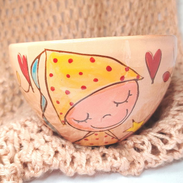 Bol décor Princesse, fait main, pour enfant, très stable, en céramique.