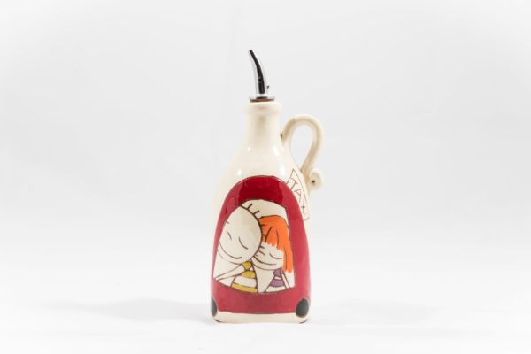 Huilier fait main en céramique avec une terre locale, décor Voyage.